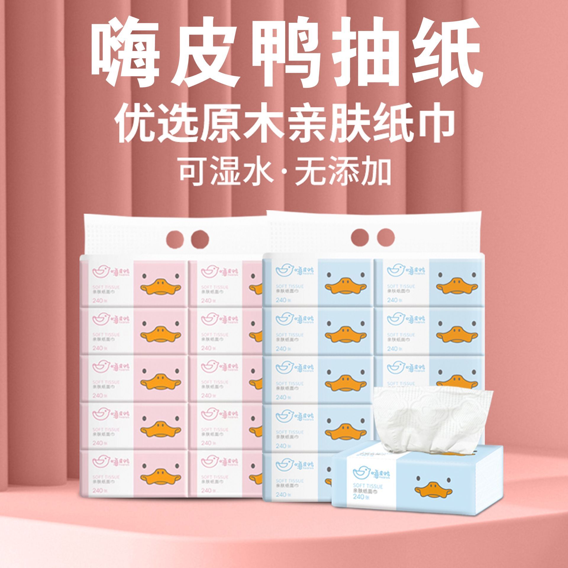 嗨皮鸭纸巾采用原生木浆,绿色、健康、安全。嗨皮鸭纸巾无碎屑,在阳光下抽取,也看不到纸屑飞舞,使用起来安全放心。嗨皮鸭抽纸采用原生木浆,无荧光剂漂白,偶尔擦到嘴唇,都可以放心入口。嗨皮鸭抽纸质地柔软厚实,接触宝宝娇嫩肌肤不磨砂,把宝宝肌肤磨损降低到0度,不会担心宝宝红皮现象。嗨皮鸭抽纸张力符合国家纸张检测标准,给宝宝擦便便不破损、杜绝尬干。嗨皮鸭抽纸出厂检验菌落总群数的严格程度,高于国家标准,嗨皮鸭纸巾的卫生安全程度达到优等级,是母婴家庭必备用纸。