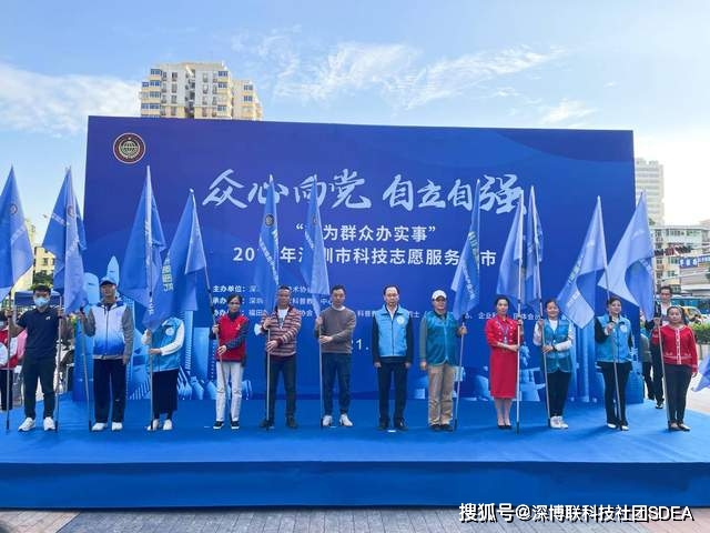 深圳市科协党组书记林祥出席活动,并为科技志愿服务分队授旗,现场人头攒动、热闹非凡。
