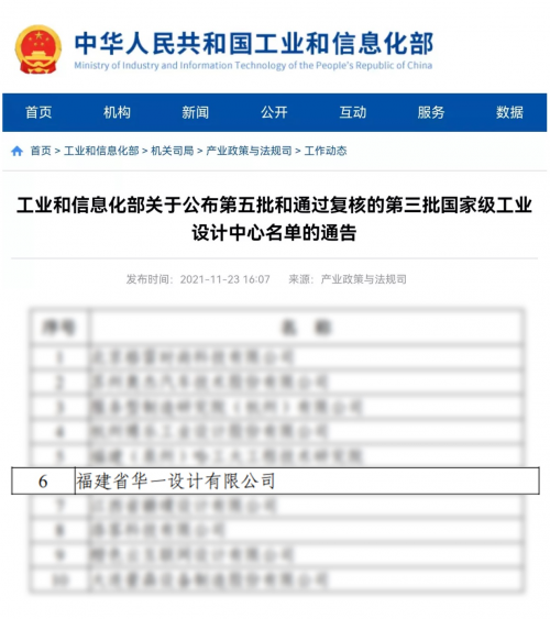 近日,国家工业和信息化部公示了第五批国家级工业设计中心的名单。福建省华一设计有限公司凭借着多年积累的品牌与工业设计服务经验、创新能力和实际成果,通过国家审核,获评“国家级工业设计中心”荣誉称号。