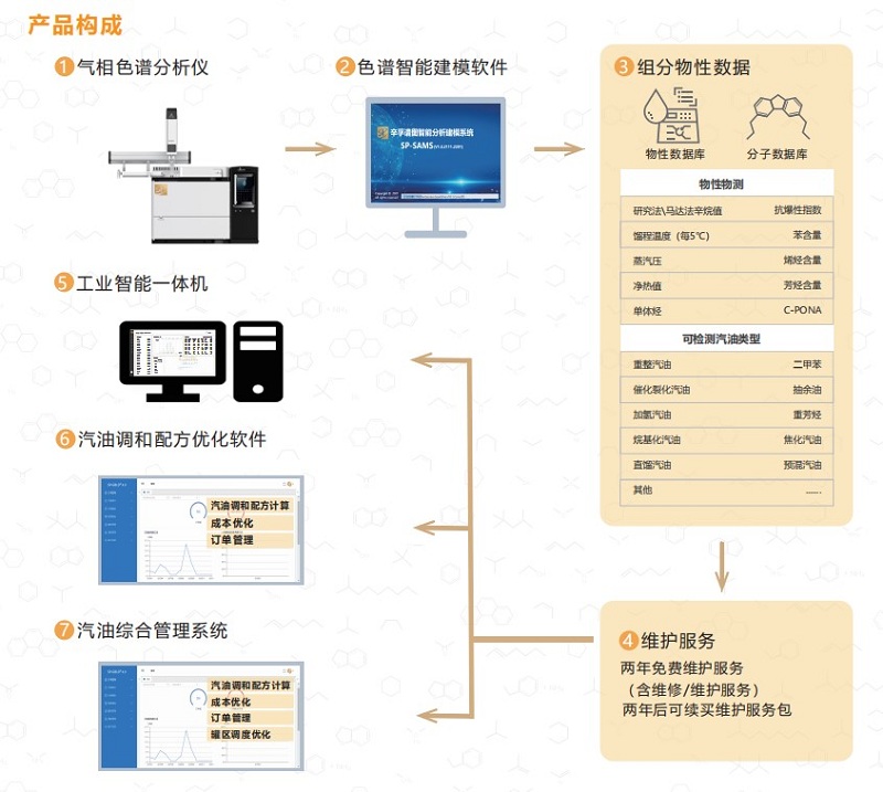 ① 基于激光光谱、核磁等组合技术的原油、成品油、全厂物料的快速检测分析仪,可离线、在线两种应用,实现全厂物料泛在感知,为软件提供实时、详细的数据。