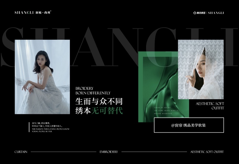 基于对刺绣文化的热爱与对创新研发的探寻,淑敏·尚利将产品线定位于年轻群体,携“绣,生而不同”的品牌slogan,让绣品美学的国粹精华,于窗帘布艺之中大放异彩。而淑敏·尚利绝非止步于此,此后也会将产品深入家居生活的各个领域,不断为消费者提供融汇艺术、时尚和人文的绣品软装解决方案。独创款式、浮纹绣花、渐变色染、环保面料、120℃永久记忆定型、360全浸式除醛杀菌等产品卖点,无不让窗帘·绣品美学软装始终表里如一。