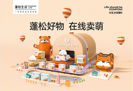 为了更具象地传递“人生不必紧绷,生活本该蓬松”的品牌主张,蓬松生活打造了萌趣可爱的原创IP形象——蓬蓬。作为POMPOM LIFE的代言人,蓬蓬持续以积极向上、不失自我、不随大流的生活态度展现蓬松生活的品牌魅力,同时以软萌可爱、开朗阳光的形象,变身母婴孕产系列产品包装的“主角”。