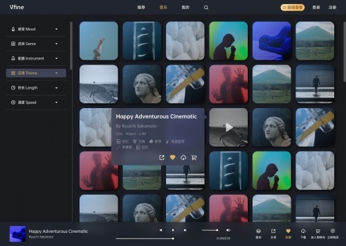 新的Vfine官网中,每一首音乐都拥有符合自身音乐气质的专属封面图。