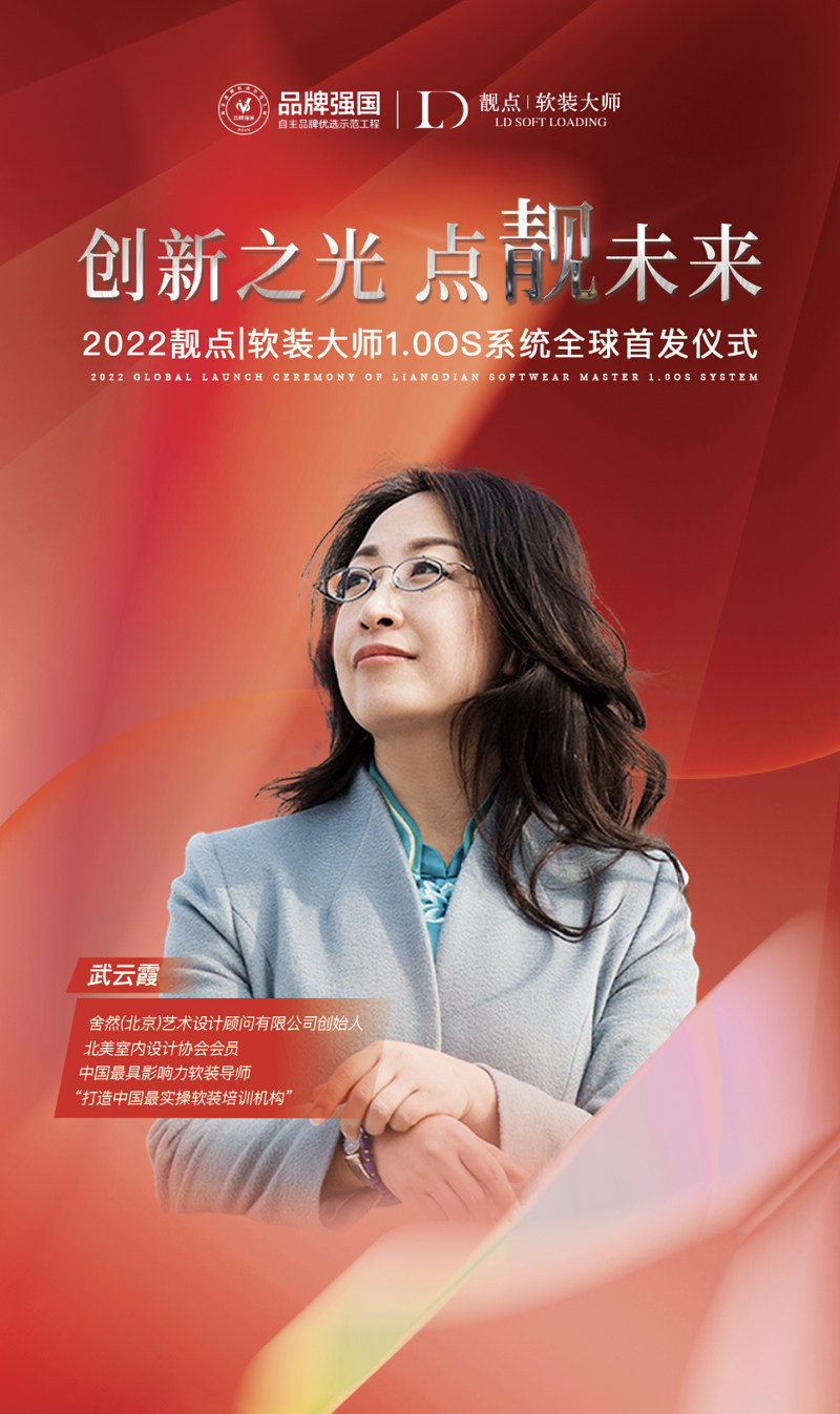 武云霞老师将在大会现场从“人”的角度出发,将文化需求与生活方式进行设定,多维解读靓点1.0OS系统产品如何通过整体空间美学、陈设艺术、人文历史、家居风水、生活方式等诸多方面的整体融合,为来宾呈现一幅以全案软装创造美好生活的年度盛典图鉴。