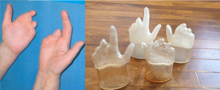 一位手部畸形患者患有严重的敏感肌,通过三维扫描技术制作患者的手部3D模型,在此基础上进行设计,通过3D打印技术完成的定制手套,极大提升了患者的生活质量。