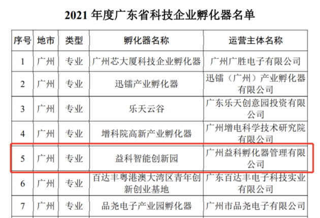为深入实施创新驱动发展战略,推动大湾区科技企业孵化载体高质量发展,近日广东省科学技术厅公布了2021年度省级科技企业孵化载体认定名单,方圆商管集团旗下益科智能创新园榜上有名,成功获评“广东省科技企业孵化器”。