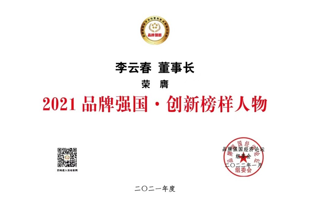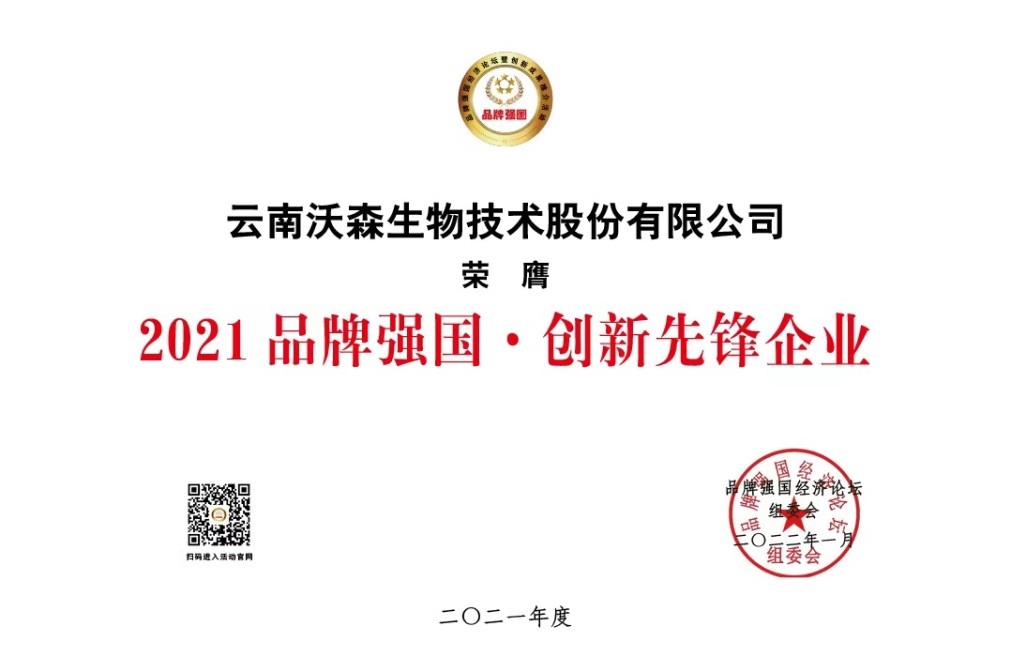 2022年1月6日至7日,2021品牌强国(博鳌)经济论坛在海南·博鳌亚洲论坛国际会议中心成功召开。论坛上,云南沃森生物技术股份有限公司荣获“2021品牌强国创新先锋企业”称号,董事长李云春荣获“2021品牌强国创新榜样人物”称号。