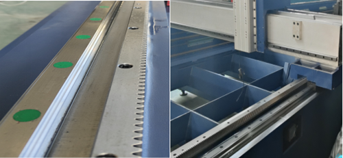经过退火等多道工序后,床身整体五面铣加工中心一次成型,导轨齿条面镜面效果,精度更是保持在0.02毫米以内。