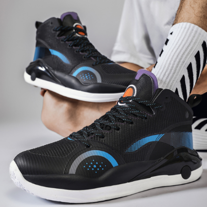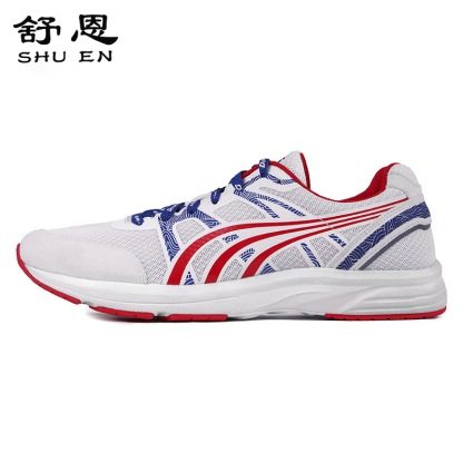 就拿上图所示的这款舒恩运动鞋来说,以植绒和小网眼三明治网布织造而成的鞋面,鞋羽处设计了轻质TPU熔断结构,所以与以足弓抗扭稳定I-ESSpro系统真碳板、3系甄属耐磨橡胶一搭配,不但包裹性极强、透气性极佳,而且上脚后很轻便有弹力,还能保护双脚均匀受力而不受伤,可以说已经是非常有品质的运动鞋了。但,有了街头文化领域的优秀人才加持后,这款运动鞋便呈现出了马路、水波纹等与跑酷、涂鸦相关的街头元素,以及红配蓝、红配黑、白配蓝等的街头风撞色设计,瞬间有了运动气息和潮流时尚感,无论是跑步、打篮球,还是平常的逛街休闲,穿上它都巨拉风。
