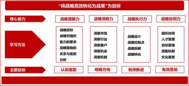 在方案制定之初,熙诚教育投资通过一对一领导访谈,一对多团队交流等形式,就企业“战略洞察、战略调整、战略展开及战略落地及监控”四个维度进行了系统性的调研。熙诚教育投资团队还联合运营中心各个部门,结合各部门实际工作需要,制定了专属的学习路径,保证各层级、各部门都能开展符合自身实际需要的学习计划。经过组织协同、人才管理、激励机制及企业文化等方面的持续改进,最终激活组织和员工,促成运营中心的多部门的战略统一,使组织效能得到明显提升。