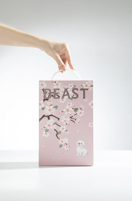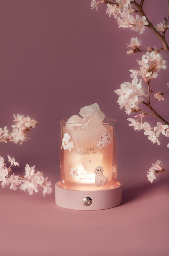 2022年初春,艺术生活方式品牌野兽派正式推出春季限定 “微笑樱花”系列。该系列集香氛/花艺/家居为一体,延续嗅觉与视觉双重美学概念,并创新推出扩香晶石氛围灯,与可爱小狗一起打造粉嫩春天。