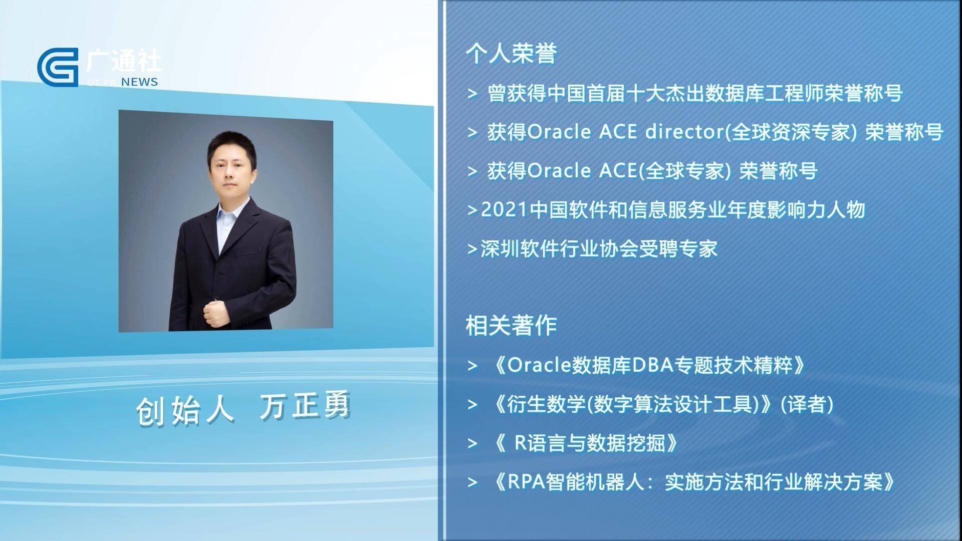 万正勇,是九科信息技术(深圳)有限公司创始人,曾任甲骨文首席解决方案顾问、中金副总经理、招商金科高级总监,是中国首届十大杰出数据库工程师、深圳软件协会受聘专家。