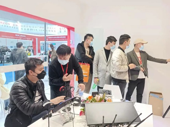 专业直播声卡展区内,AK8数字直播声卡、AK8PRO数字直播专业声卡(升级版)、CM8触控频内置APP数字直播声卡、VD8数字直播专业声卡、AK10专业数字智能声卡(新品)等产品均博得众多观众的眼球,咨询产品的客户接踵而来。