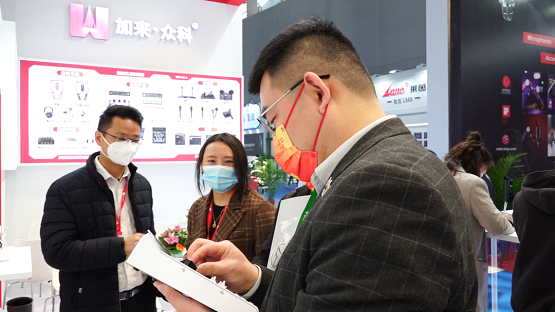 加来众科麦克风展品区为大家带来了一系列麦克风产品,有新品WM24一拖二无线领夹麦、WM22一拖二无线麦克风、CA200手持麦克风,更有经典产品DM300/DM200动圈式麦克风、CM200大振膜麦克风、VTM12真空管麦克风、WM20一拖二无线麦克风等,更多种类、更多选择,让观众们能够更好地亲身感受产品。