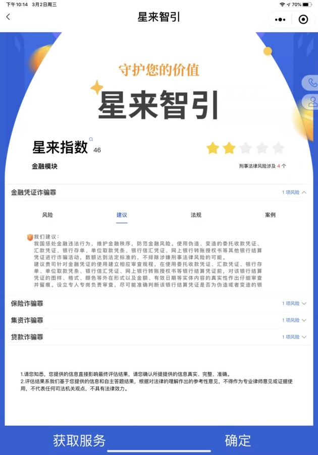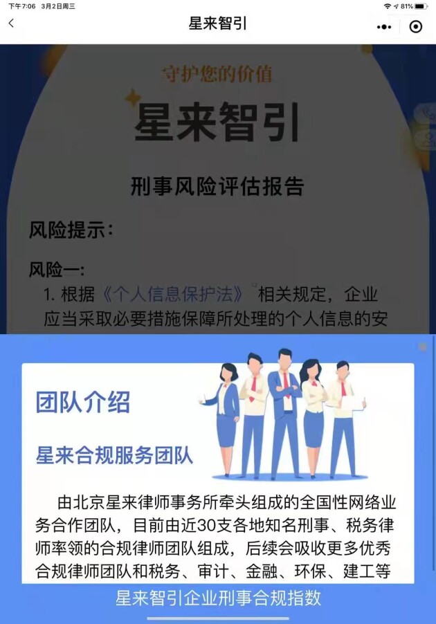 企业刑事合规是新时期司法改革的重点,也是企业合规体系构建的重要环节。2021年4月,最高人民检察院发布了《关于开展企业合规改革试点工作方案》,启动了第二期企业合规改革试点工作,企业和企业家得以在更为宽松的营商环境下创新发展,为企业的生存发展及合规建设带来了积极的影响。而星来智引2.0是将互联网前沿技术与专业法律服务深度融合的独创性法律科技产品,首次将企业合规风险与刑事罪名相结合,为企业精准识别刑事风险,在法律风险防范领域有着不可估量的商业价值。