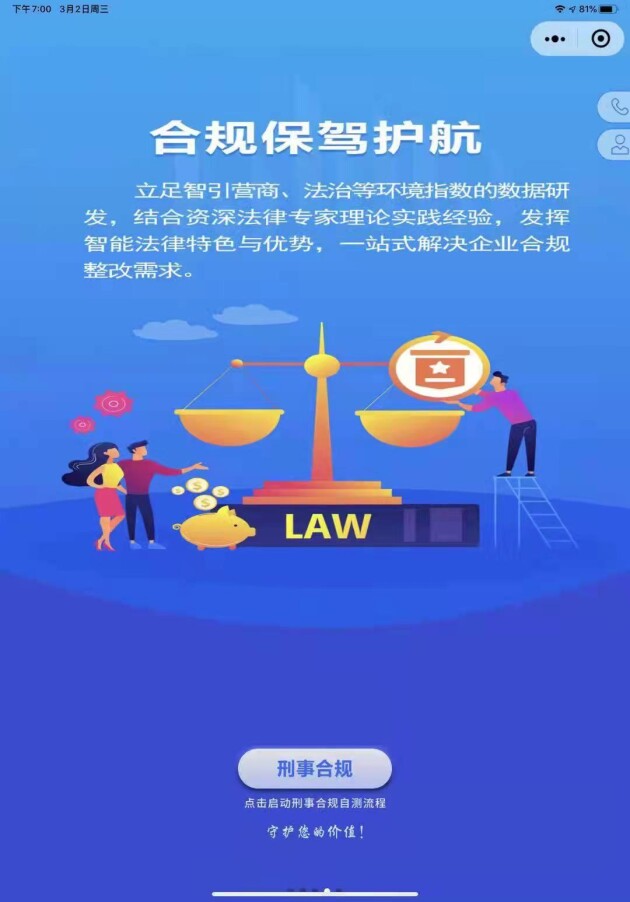 星来智引2.0产品是法律传统行业与现代互联网技术的创新结合,对于当前法治环境下企业健康、长足发展有着不可或缺的重要意义。如果说合规业务是企业的护心镜,那么星来智引2.0产品就是企业的夜明灯,精准的风险评估、专业的合规咨询与金牌合规法律服务,为企业提供一站式解决方案。