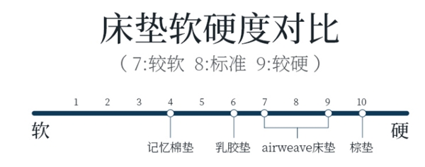 airweave爱维福分区床垫,床垫有标准、较硬、柔软三种硬度