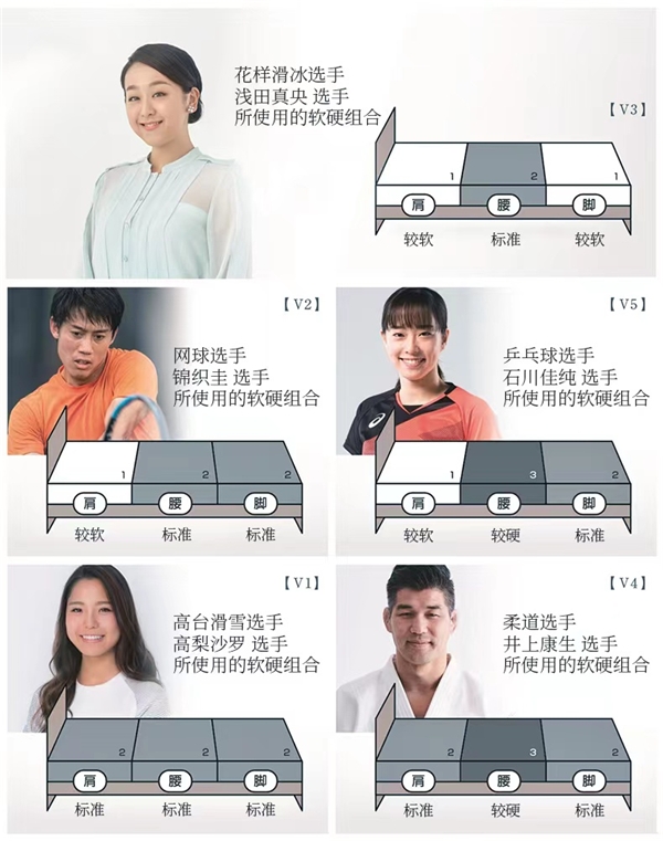 运动员选择了适合自己的软硬组合,airweave爱维福分区床垫