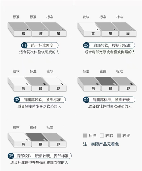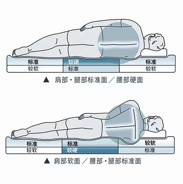 用户可以结合自己的身材、需要来翻转芯材,自行组合,调整3个区域的硬度