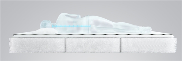 当躺下的时候,不论仰卧还是侧卧,身体都是曲线的。尤其是平躺的时候腰部的承重最大,肩部和腿部的承重略轻一些。想要在睡眠时保持人体的脊柱曲线的自然排列,就需要提升和加强床垫腰部位置对人体的支撑力。