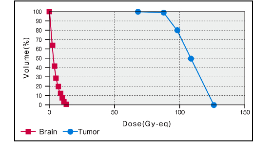 剂量-体积直方图(DVH)是显示多少射线剂量,照射到多少百分比体积的图。根据日本中子俘获治疗学会提供的BNCT剂量-体积直方图(图3) ,可以清晰看出脑部正常组织所受辐射剂量和肿瘤细胞所受辐射剂量的曲线没有任何交集。除了BNCT外,没有任何治疗方法DVH曲线如此完全分离。可以说,BNCT的“精准”已经突破物理极限,不仅可以选择性地对癌细胞施加放射剂量,甚至连病灶部位的正常细胞也会受到保护,因此被业界誉为细胞层级的“重离子刀”。