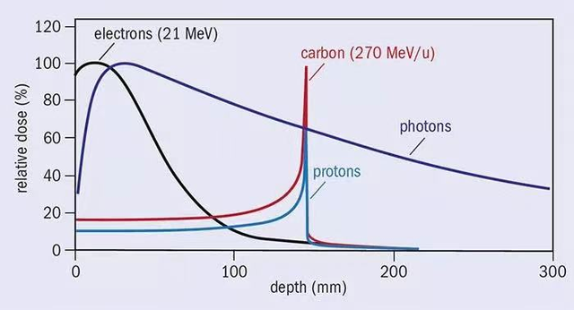 从光子放疗的技术演进不难看出,放疗一直在孜孜不断地追求着提高治疗增益比,即最大限度地将剂量集中到肿瘤靶区内,而使周围正常组织和器官少受或免受不必要的照射。虽然光子放疗技术取得巨大进步,但受限于多种因素,物理精度的提升仍然有限,照射路径上的正常组织难免受到一定剂量的辐射,导致的毒副作用不可避免,且部分肿瘤对于光子束相对不敏感,难以发挥有效的治疗作用,不能完全满足临床需要。