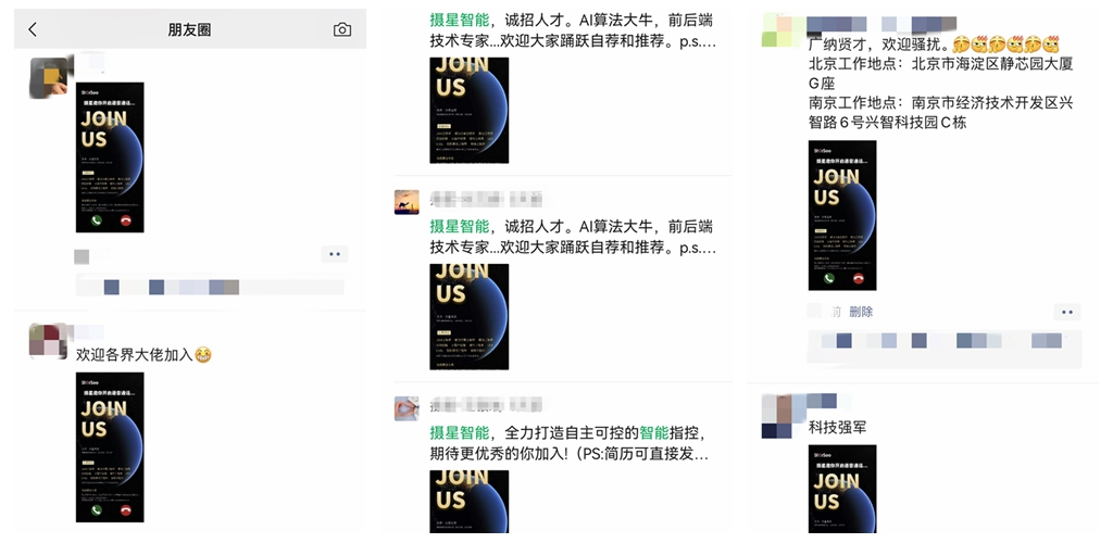 此举让多位业界大佬、技术大咖、企业家老总在感叹摄星智能重金求才这种魄力的同时,纷纷转发助摄星智能一臂之力。与此同时,摄星智能多位同事也纷纷在多个业界大群内派发大额红包,短短几小时内,朋友圈已被摄星智能的招聘海报刷屏。
