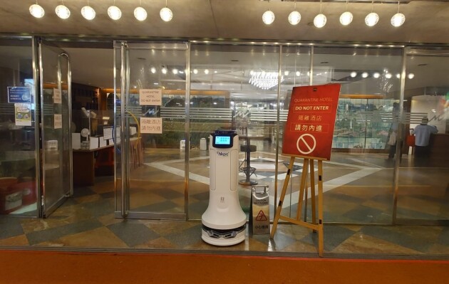 创歌科技(Innocore Technology Ltd.)是普渡在港的优质代理商之一。在创歌科技的大力协助下,此次援港抗疫行动得以迅速、顺利的进行。从香港仓提取机器人直至运送机器人到指定酒店,整个创歌科技团队亲力亲为,争分夺秒。目前,首批普渡机器人已入驻香港政府指定的隔离酒店——粤海酒店和九龙维景酒店。