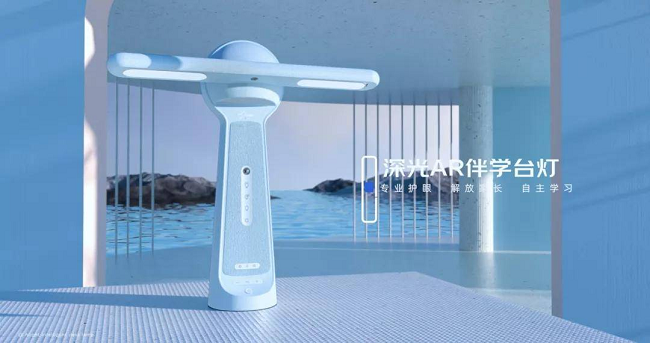 基于此方向的探索,深光科技在2020年切入教育赛道,推出深光 AR 投影伴学台灯,针对家庭伴学、在线教学等场景,将投影技术、AR技术、AI识别技术与护眼台灯相结合。AR台灯可以在任意平面上投射出23寸护眼大屏,在学生学习过程中,对书本内容进行识别,并结合AI算法实时呈现多样化电子教育内容。