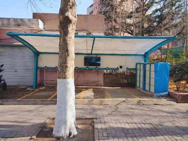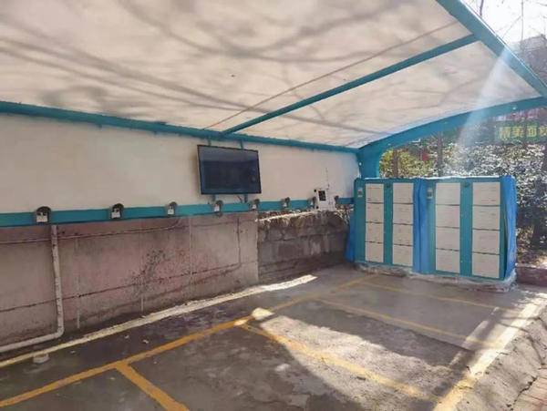 在入驻的社区建设了便捷的充换电停车棚,棚內有电动车充电位,充换电柜,云端24小时监控摄像头等智能设施。智能监测系统会实时反馈电动车在充电时的电流电压问题,超标后会对电池发出断电指令并给工作人员发送预警信息,一旦着火,柜内有泡沫灭火器和气凝胶灭火器可以及时扑灭。