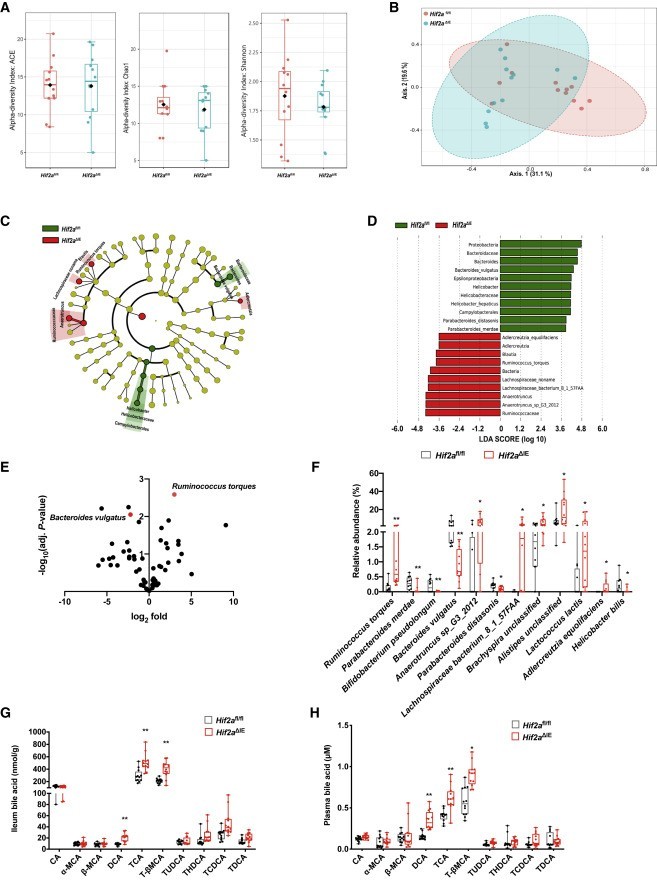 1、Hif2a肠道特异性敲除调节肠道共生菌的组成和胆汁酸谱