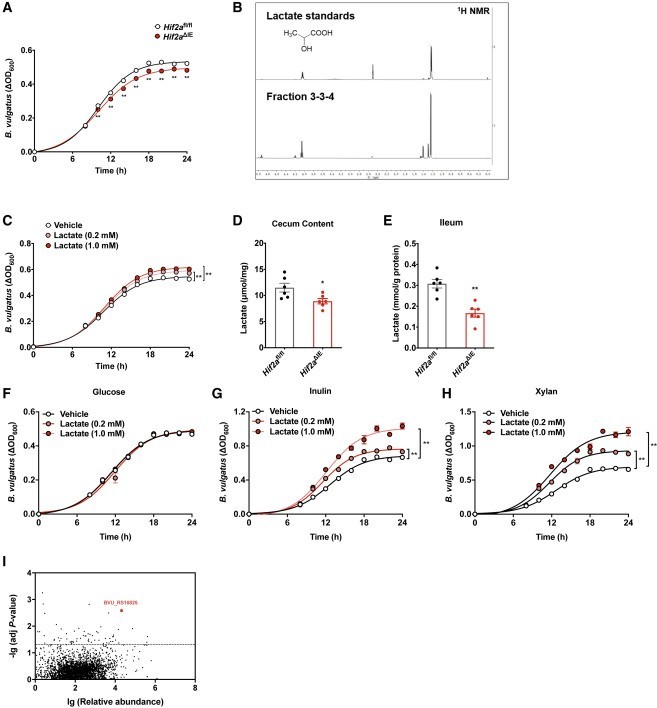 2、Hif2a肠道特异性敲除通过降低肠道乳酸水平抑制B. vulgatus生长