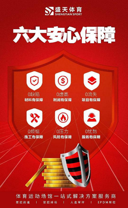 扎根体育地坪、精耕体育地坪,用心为客户提供更加专业放心的体育地坪材料及场地建设服务,是盛天体育永恒不变的追求。除了刚才提及的“六大安心保障”以外,盛天体育还推出了十二项“一站式帮扶计划”,通过提供招投标、扎场地勘察、绘制施工图纸、大额资金支持、裸奔价产品、帮做施工指导等帮扶,成为客户身边真正的体育地坪专家。