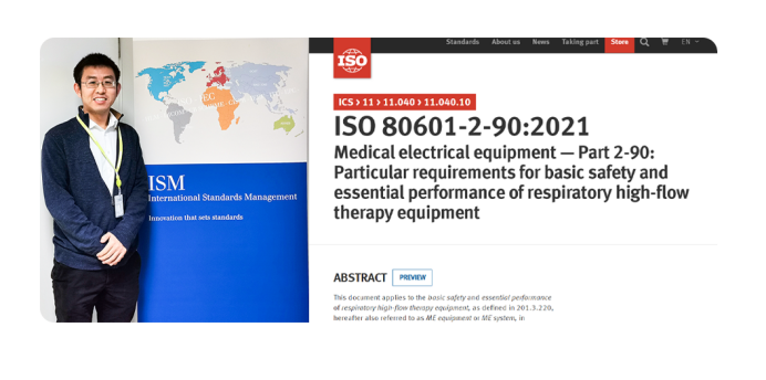 除了全力支援抗疫设备之外,北京怡和嘉业在全国麻醉和呼吸设备标准化技术委员会(SAC/ TC116)秘书处的指导下,提出国际标准的立项申请,并由我司标准化技术专家担任项目组负责人。2021年8月30日,高流量呼吸治疗设备国际标准(项目号:ISO80601-2-90:2021)在ISO官方网站正式发布。从“跟随者”变为“原创者”,北京怡和嘉业为国际标准化制定贡献中国智慧。