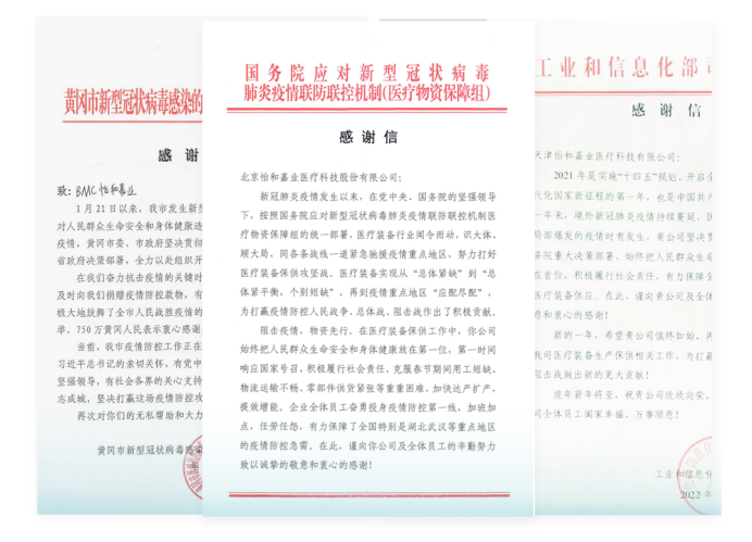 北京怡和嘉业的抗疫行动得到了国务院应对新型冠状病毒肺炎疫情联防联控机制医疗物资保障组的高度肯定,并多次收到国家部委、医院及大使馆的感谢信。