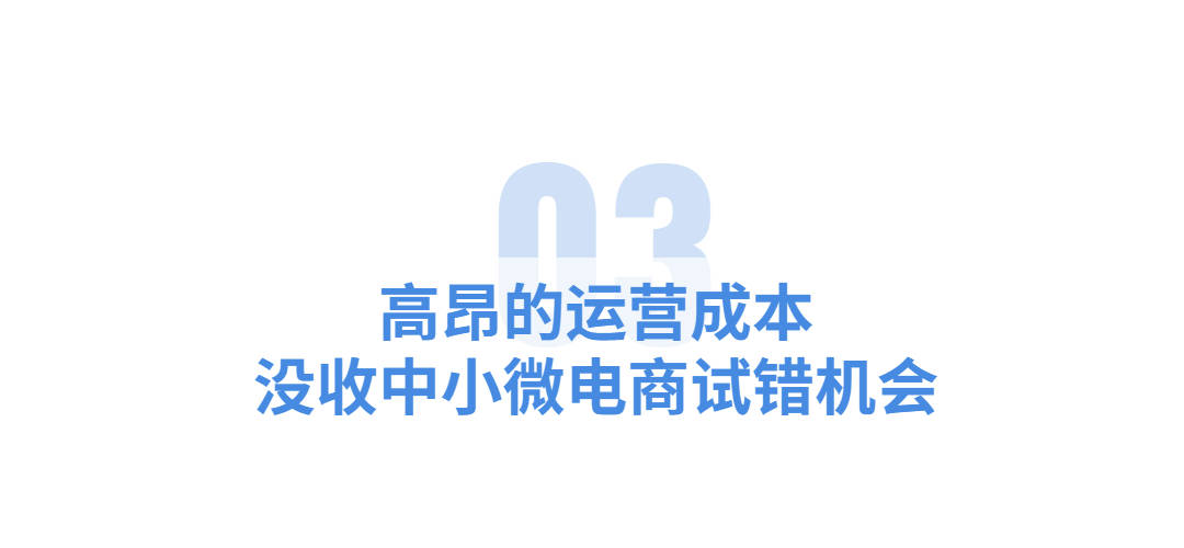 但是近年来,越来越多的大型实体企业和电商巨鳄涌起,例如:2011年进入电商行业的小米,目前已成为世界销售量第二的手机品牌;成立于2012年的电商企业三只松鼠,目前成为年销售额破百亿元的上市公司;2012年从传统渠道转型进入电商渠道的华为,曾一度登顶全球销量第一手机品牌;传统连锁零售企业良品铺子,2012年入驻各大电商平台,同年电商销售额1200万元。他们大多拥有充裕的营销经费和成熟的运作团队,重金打造之下流量倾斜严重,导致整个电商领域流量成本攀升,中小微企业面对电商这张高额入场券只能止步不前。