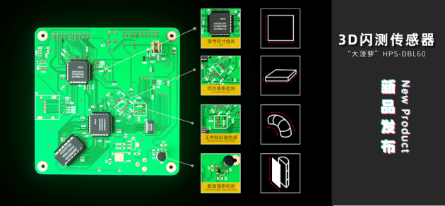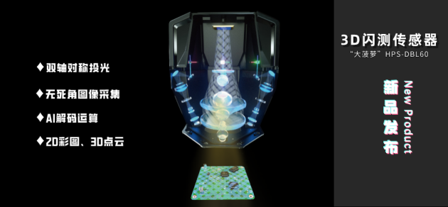 继去年4月发布的中国首台3D线光谱共焦传感器引发行业广泛关注后,2022年4月18日,海伯森在3D视觉检测领域再次发力,正式发布中国首台一体式3D闪测传感器——“大菠萝”HPS-DBL60。