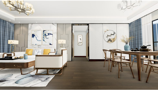 2016年,雅诗香阁地板率先引进了格丽斯工艺,并将其应用到实木地板工艺上。这种做法打破了传统以红黄色彩为核心的地板风格,将工业风表现得淋漓尽致,风靡整个地板行业。