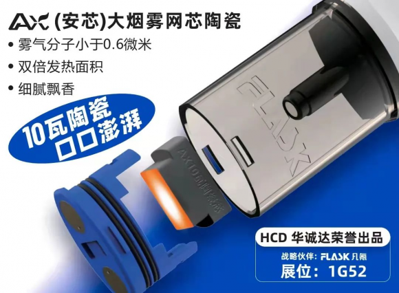 随着HCD华诚达AX(安芯)10瓦陶瓷芯的成功研制,已经受到国内不少品牌的青睐。据小编了解,目前供应国内外的电子雾化器品牌FLASK凡氪推出的“十瓦陶瓷 口口澎湃”就是采用了该款陶瓷,真正实现了大烟雾澎湃模式。华诚达雾化科技
