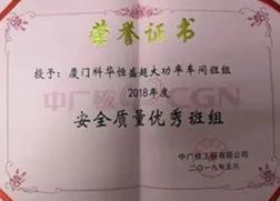“设备制造班组”荣获2018年度安全质量优秀班组