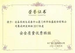 “集成研发班组”荣获2017年度安全质量优秀班组