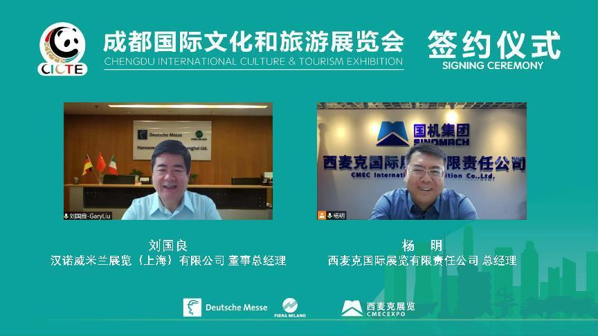 5月11日上午,西麦克国际展览有限责任公司(以下简称:西麦克展览)和汉诺威米兰展览(上海)有限公司(以下简称:汉诺威米兰展览)于线上举行了成都国际文化和旅游展览会合作签约仪式。
