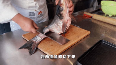 先将两面鱼肉切下来,起了两面的鱼骨。