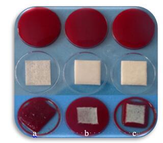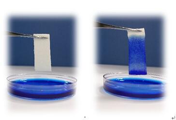 ▲佰速合®产品及其疏松层、致密层与血液接触后状态图