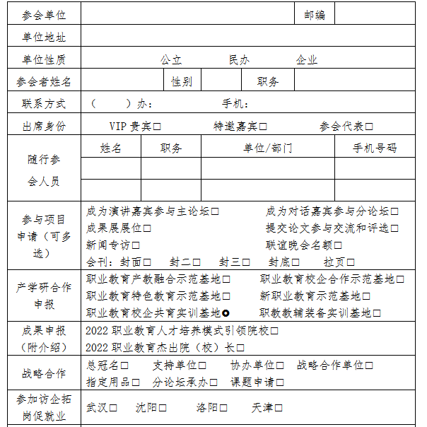 2022中国职业教育发展论坛参会回执表