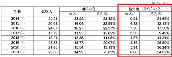 大富科技在公告中显示,“公司对外并购的多个企业整合效果不及预期,在后续剥离或关停的过程中,产生了较大的一次性减值负面影响。但大富科技自主培育的大富方圆、大富精工等消费类电子子公司,以及自主培育的汽车零部件业务均有较好的业务能力,在近几年盈利能力持续增强,其毛利率水平也在不断增长,为弥补通信业务低谷期导致的产能不足和利润下滑起到了关键作用。”