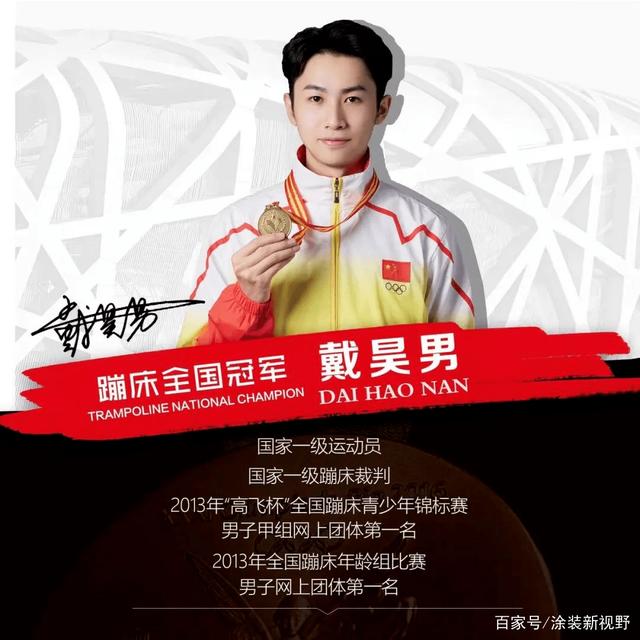 同样出生于南京的戴昊男,从五岁起开始练习蹦床,年仅11岁便与伙伴一起,夺得中国青少年蹦床锦标赛团队第一名,2013年全国蹦床年龄组比赛男子网上团体第一名,2015年全国第一届青年运动会男子蹦床团体铜牌。