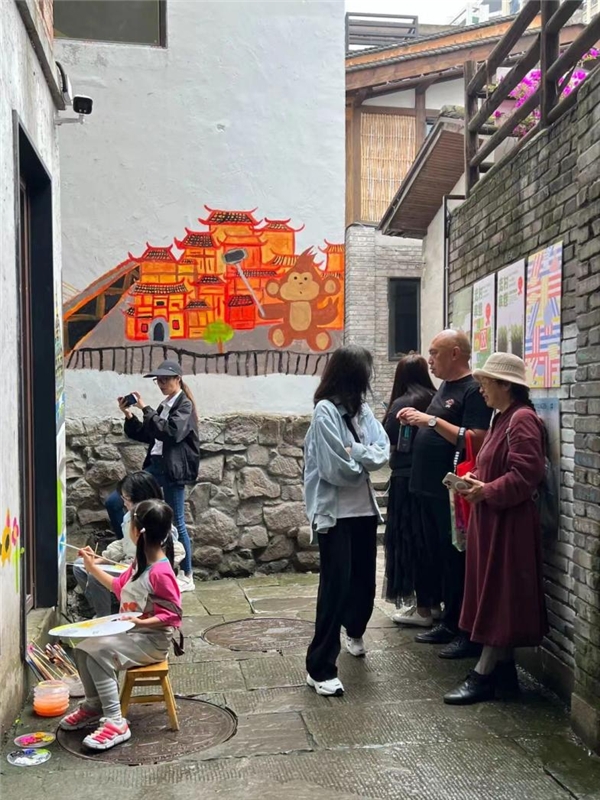 另一方面,充满人文气息,拥有优美自然环境的山城巷,也为耳朵人的孩子们带来了更多的灵感,他们在此次画作中不作草稿和预设,自己选择内容,用他们自己擅长的方式去完成此次墙绘,创作出了许多生动的画面,如白景天的《海啸》,严馨儿的《未知之门》,李闻芹的《Something》,周天天的《怡然自得》,胡美兮的《我的奇幻世界》,周宸枢的《LOVE》。这些充满童真的即兴创作引来了游客们的驻足观看,纷纷合影留念,记录这美秒又生动的瞬间。