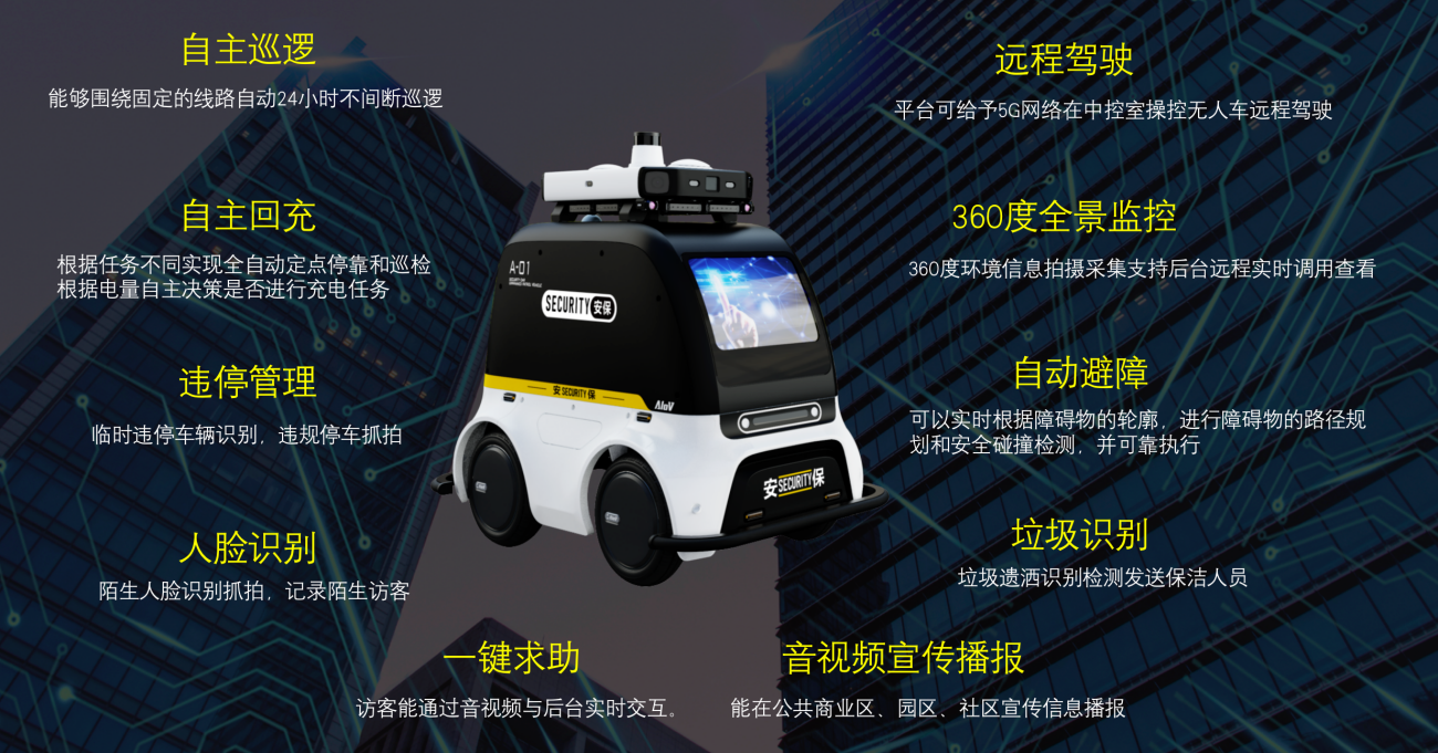 在业务成面也存在诸多问题。人车管控难,出现未登记人员入侵、安保人员违规值守、人员异常行为、是否存在消防隐患等问题;监测种类繁多,是否存在消防隐患、关键设施损坏或丢失、消防通道是否被堵塞、垃圾有无满溢及乱丢等等;主观影响比较大,固定监控盲区多无人看、恶劣环境下工作难坚持、夜间巡逻有效性难提高、安保工作态度监管难等一系列的问题。