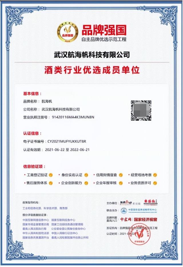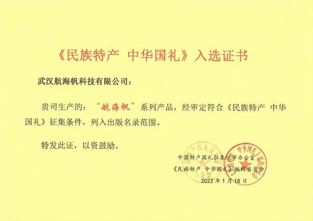 武汉航海帆科技有限公司始终坚守匠心产品品质,生产健康产品的初心,打造了独特的航海帆产品品牌,走出了自主的特色发展之路。在产品的研发生产上,航海帆科技与行业优质厂家合作,发挥各自的优势,在保证产品的品质的同时降低成本。在自有产品研发的同时,代理国内知名品牌长城红酒,丰富产品品种。在产品宣传推广上,航海帆科技采用了以一直擅长的线下实体为主,销售网络遍布全国10多个省,逐步进行互联网销售,打造特色产品品牌,期望能逐渐改变国人依赖进口产品的现象,提高国人对国产品牌的正确认识。航海帆科技的品牌发展之路获得了社会的大量认可,2021年7月16日经由品牌强国示范工程华中运营中心审核、认证、社会公示,武汉航海帆科技有限公司符合示范工程评选标准,成功入选为品牌强国示范工程酒类行业优选成员单位,企业信息录入品牌强国示范工程数据库,在国家级平台展示品牌形象。2022年1月18日,凭借出色的品质,航海帆系列产品正式被中国特产国礼征集评审办公室评为《民族特产 中华国礼》,并被《民族特产 中华国礼》编辑委员会列入出版名录。